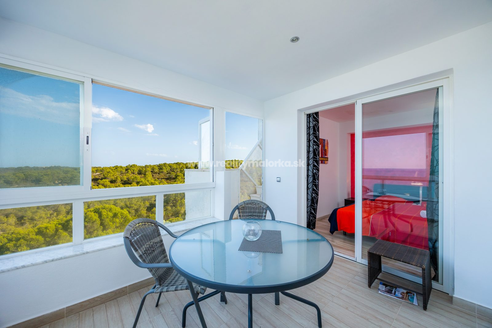 Apartmán disponuje dvoma priestrannými spálňami, ktoré poskytujú dostatok súkromia a pohodlia. Každá spálňa je vybavená vstavanými skriňami a má prístup k balkónu s výhľadom na more.