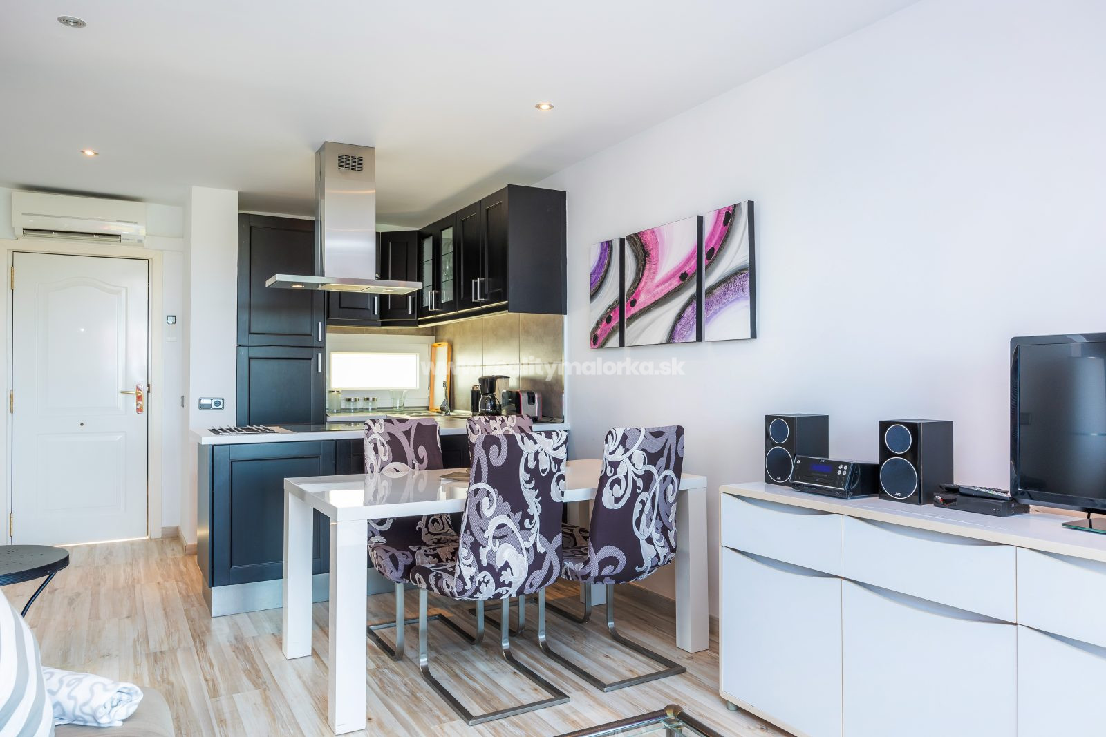 Po vstupe do apartmánu vás privíta priestranný otvorený priestor, ktorý v sebe spája kuchyňu, jedáleň a obývaciu izbu. Tento koncept vytvára príjemný pocit priestrannosti a umožňuje plynulý prechod medzi jednotlivými zónami.