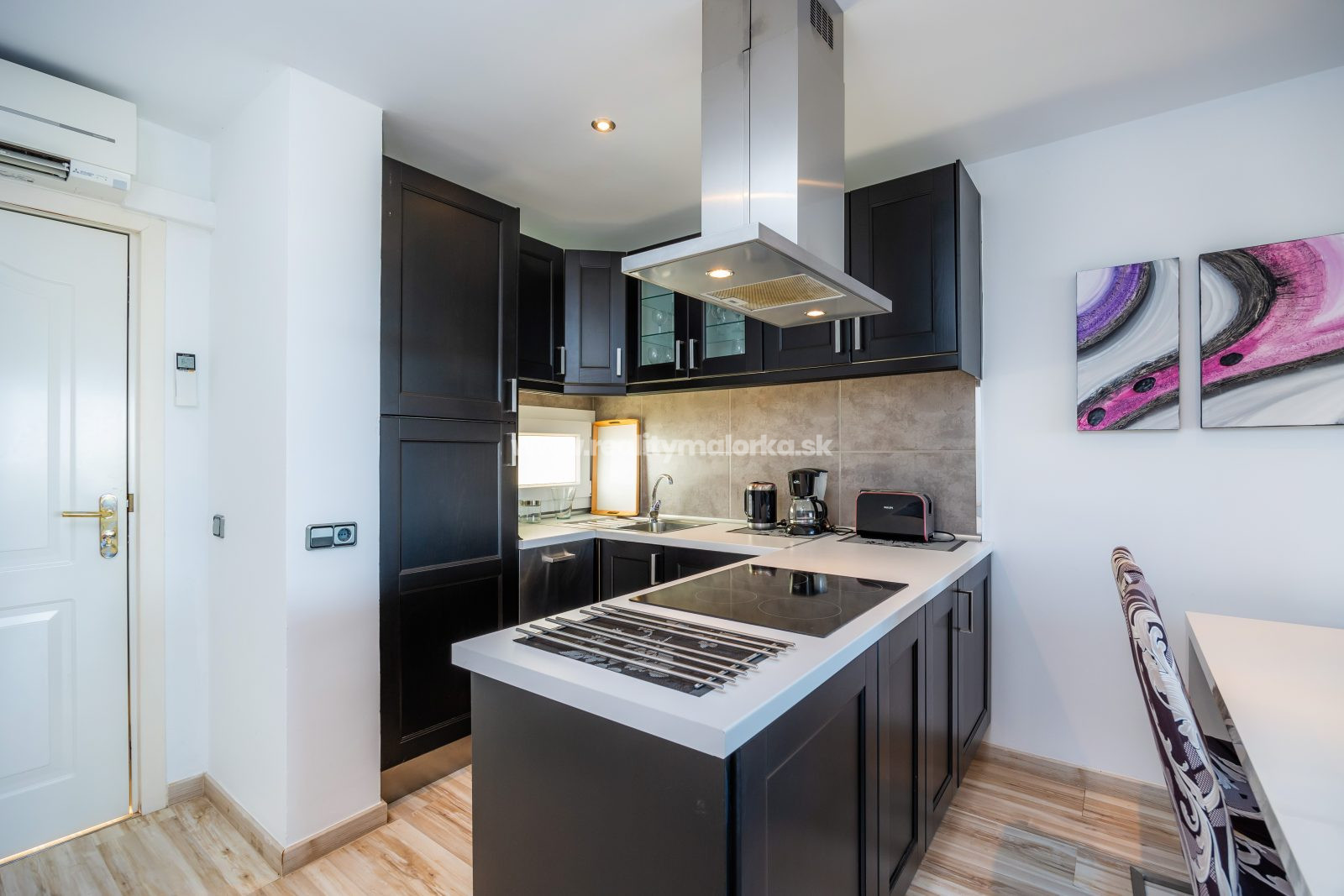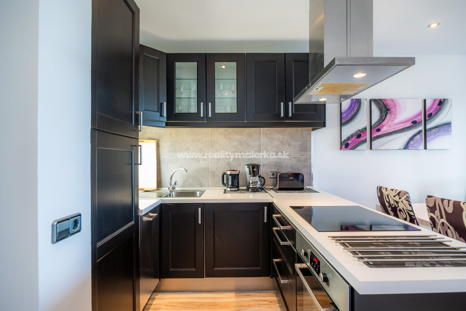 Kuchyňa je plne vybavená modernými spotrebičmi a poskytuje všetko potrebné pre prípravu chutných pokrmov. Elegantné skrinky a pracovné plochy z kvalitných materiálov dodávajú priestoru sofistikovaný vzhľad.